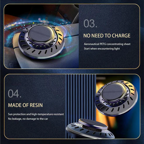 Enhance your driving experience with our rotating solar-powered car aromatherapy – an instant fragrance diffuser that activates in sunlight. Enjoy long-lasting, harmless aromas that are safe even for pregnant mothers. The delightful UFO styling adds a touch of whimsy to your journeys. ✨🚘